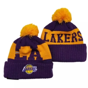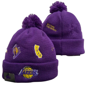 Классические Бини (Beanies): Мягкие вязаные шапки с отворотом и контрастной вышивкой «Lakers».